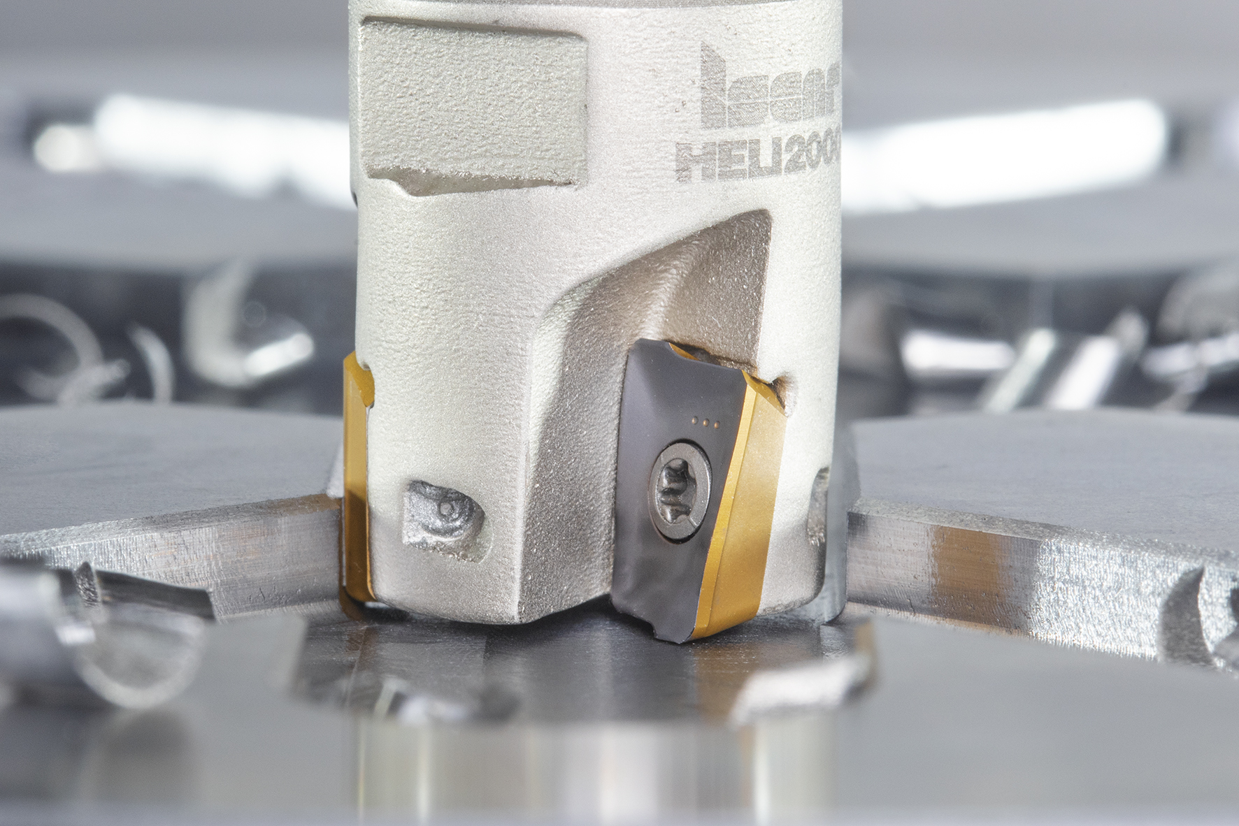 HELI2000 integrates the HELIMILL and HELIPLUS families, combining their latest developments into a single portfolio. This includes the introduction of two new highly efficient carbide grades: IC5600, designed for machining steel (ISO P group), and IC716, specifically tailored for cutting titanium. Additionally, the insert range has been expanded with new cutting geometries. This includes inserts with a high positive chipformer for milling titanium, chip-splitting cutting edges for productive roughing, and other designs. Furthermore, the range now includes inserts with reinforced cutting edges for high feed milling of hard materials up to HRc 60 hardness (ISO H group, Fig. 4). These new products are also part of ISCARâs HELIALU family, which consists of milling tools with parallelogram-shaped inserts for machining aluminium alloys (ISO N group). The expansion of this family includes indexable endmill heads with threaded adaptations for both MULTI-MASTER and FLEXFIT systems, providing the option for high-pressure cooling (HPC). The screw-in design configuration of the heads significantly enhances the customisation capabilities of HELIALU tools, allowing for a wide range of MULTI-MASTER and FLEXFIT shanks, adaptors, extensions, and reducers to be utilised. Therefore, the development of the âhelical parallelogramâ has not ceased, and the traditional HELIMILL continues to gain momentum. This development follows a gradual upward helix, revisiting past turns but at a more advanced stage.