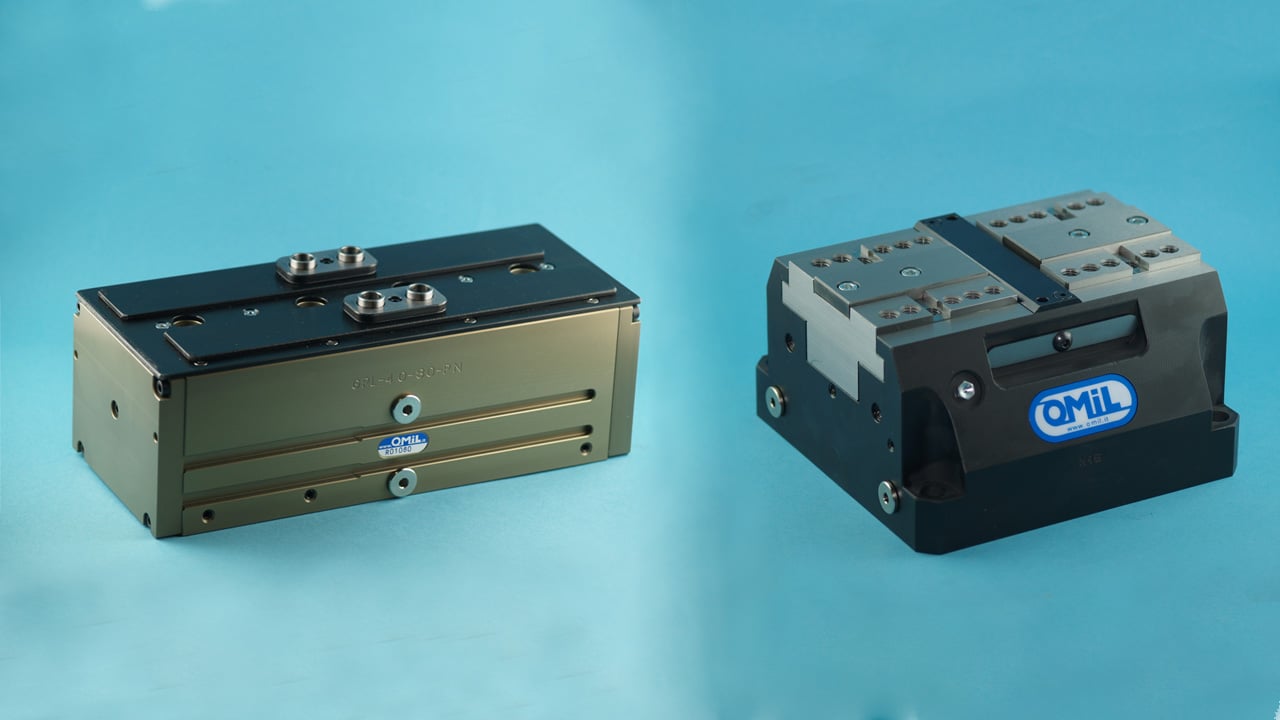For applications where larger and heavier workpieces require gripping OMIL has a number of ranges that provides strokes up to 400 mm and gripping forces of 10,000 N at normal workshop pressure of 6 bar.