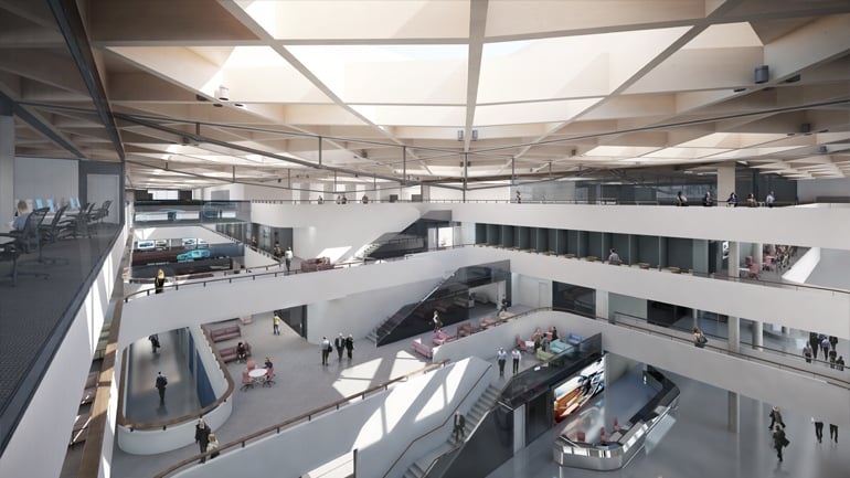 The National Automotive Innovation Centre was designed by Cullinan Studio and is being constructed by Balfour Beatty. The building will occupy 33,000m2 next to WMG's current facilities on the University of Warwick campus. The four-storey building has a collaborative heart with space for partners, academics, students and the supply chain to work on a range of advanced projects. The ground floor of the building has a large public space, which will host exhibitions relevant to the technologies and concepts being developed.