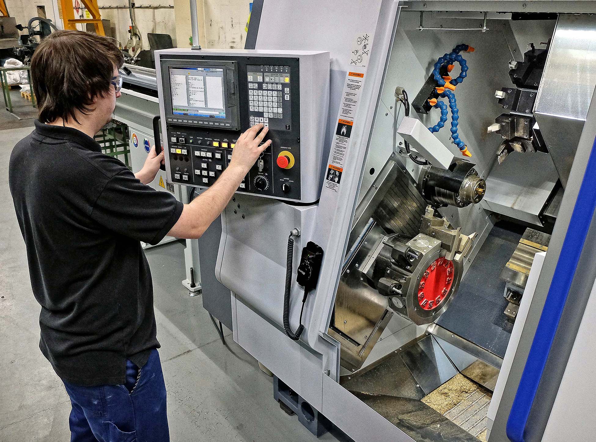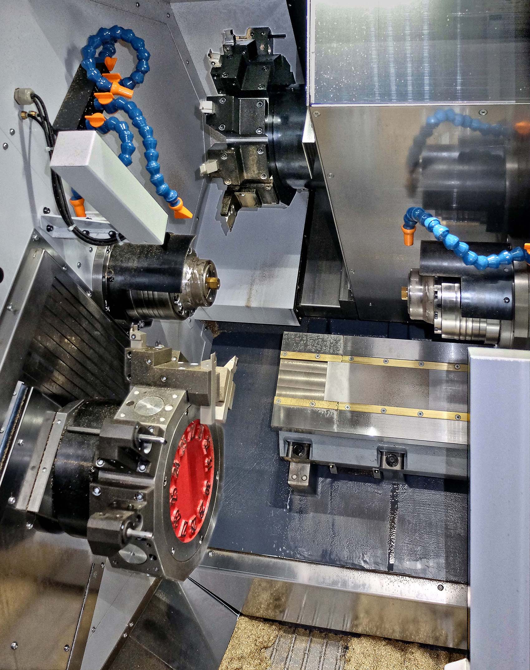 Senior operator Dan Gardner added, “We have only taken advantage so far of cutting with two tools at a time, but the superimposition function in the Mitsubishi M730VS control, coupled with Y-axis movement of the upper turret and X-axis travel of the counter spindle, allows three tools to be in cut at the same time.