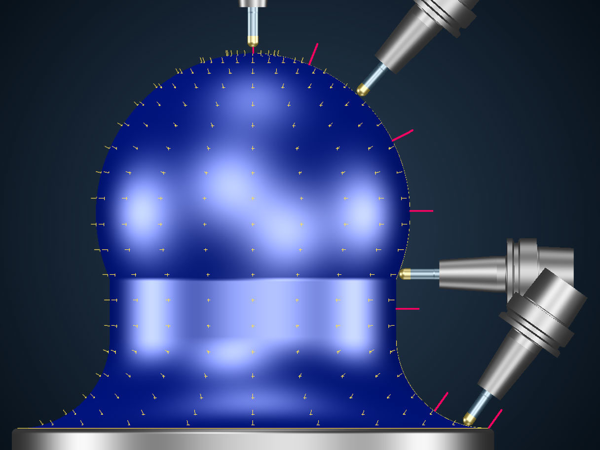 In most CAM system it is necessary to create a control surface when programming 5 axis machining operations. In Tebis CAD/CAM this function is automatic, with the control surface being created in the background by selecting only the surface you wish to machine. This will give a very accurate creation of vectors for controlling tool and head direction. There is no need to switch between CAD and CAM packages which saves time by not having to create the control surface data and also increase consistency and accuracy.
